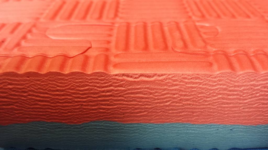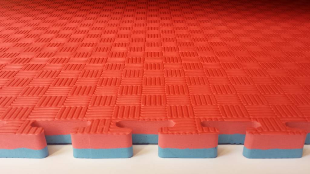 Squared tatami made of 100% EVA (Ethylene Vinyl Acetate) foam, not fireproof, bicolor, allows using both sides, ideal to create combat areas distinguished by colors. It has a superficial engraving rice-straw pattern. It is 2.5 cm thick. It is the best solution to cover big floor surfaces during the practices of marital arts; because its offers security and protection against impacts and projections. Its edges with puzzle shape, allow an easy assembly and disassembly; it is also easy to storage because it is stackable. It is ideal for the practice of Karate, Taekwondo and any other styles and disciplines of martial arts and combat sports. Not recommended for martial arts and combat sports with projections.