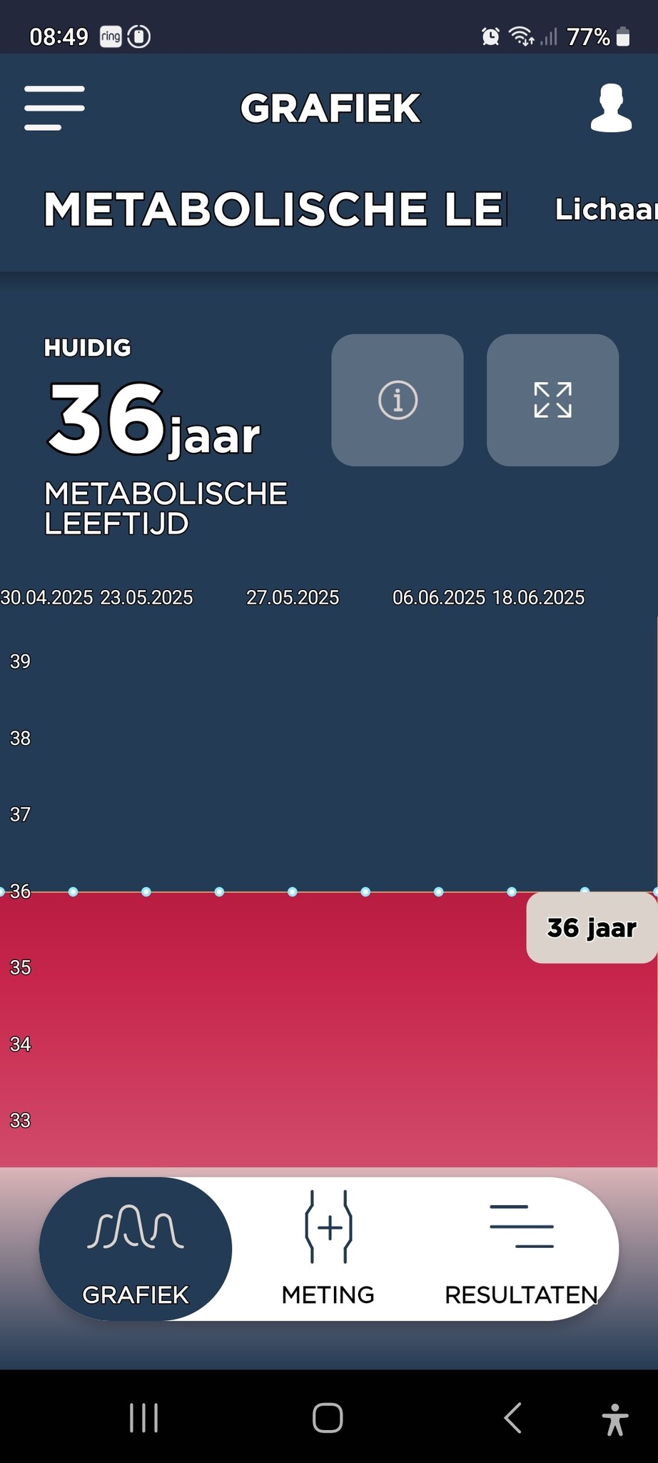 Ik kon het ook niet laten om even te kijken wat mijn metabolische leeftijd was op mijn 52e jaar :-)