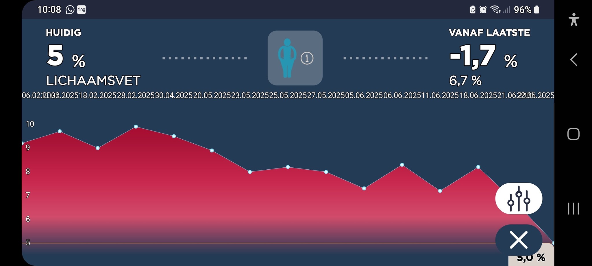 Dit heb ik regelmatig in de sportschool gemeten op de Tanita weegschaal.