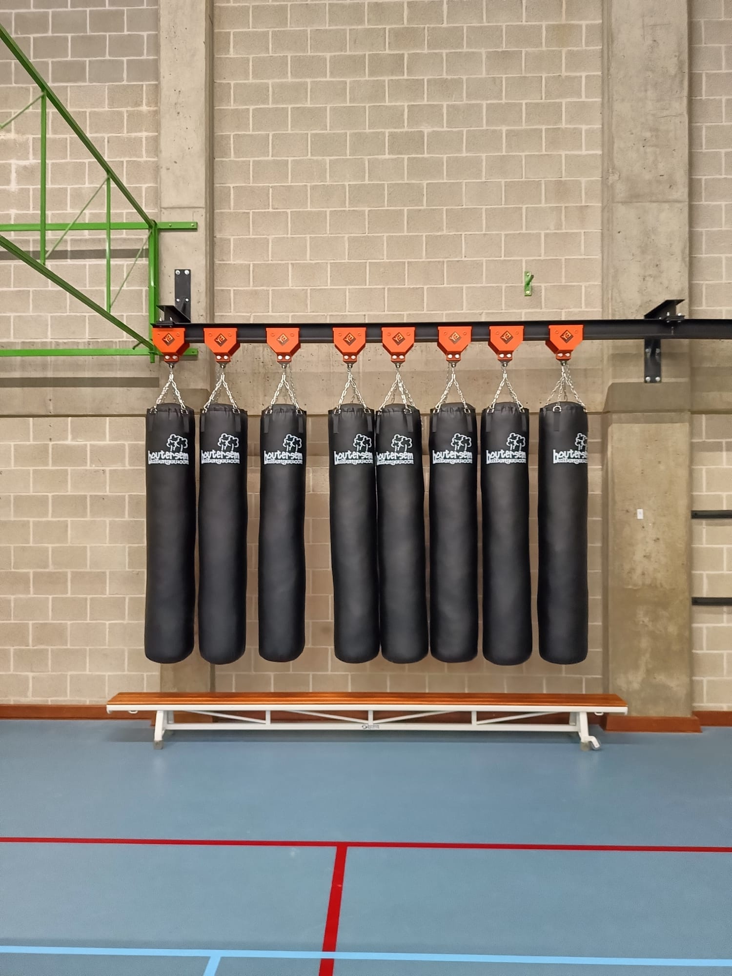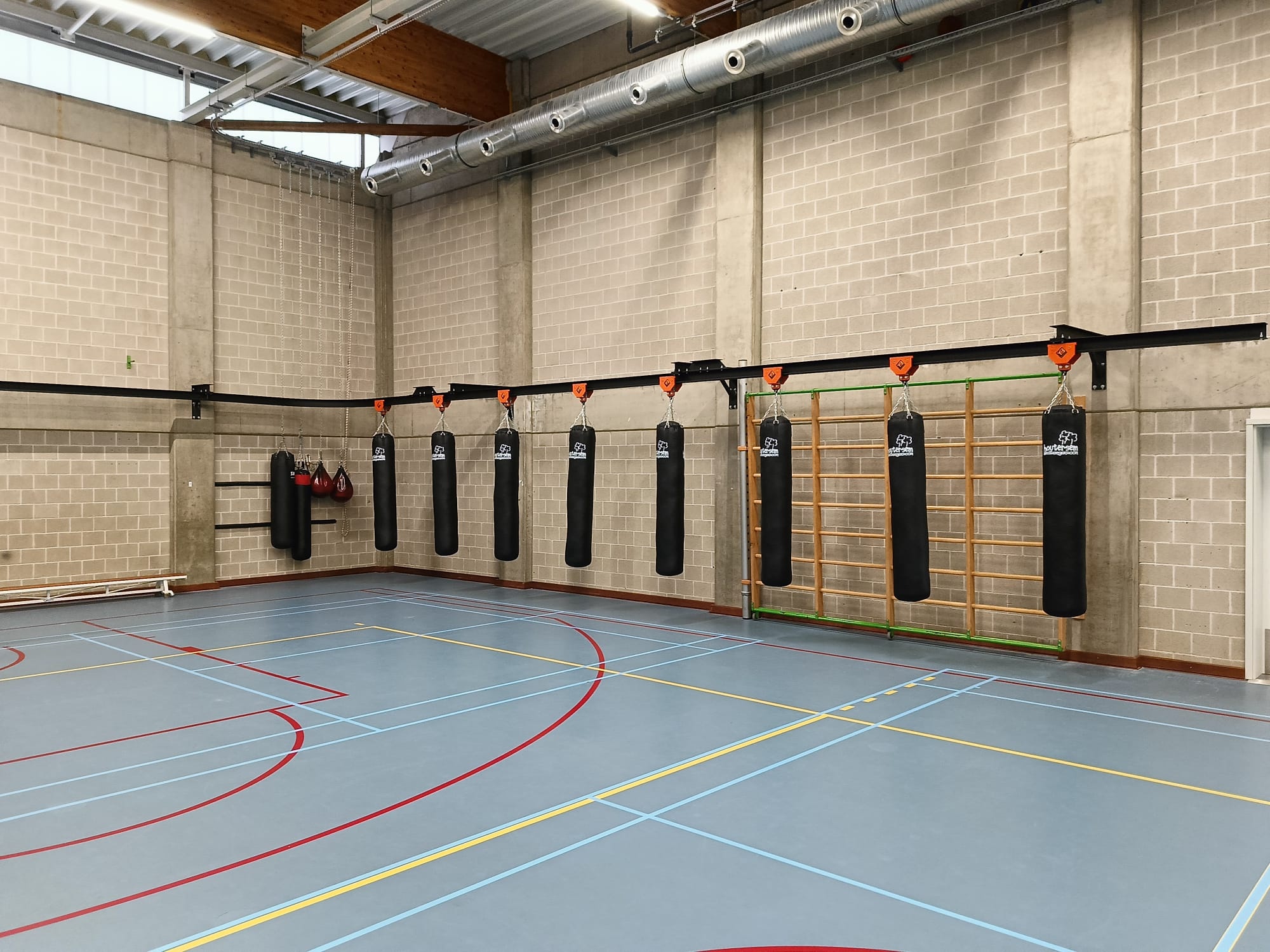 - Ruimtebesparend: Bokszakken kunnen snel en moeiteloos worden weggeschoven, waardoor de zaal direct beschikbaar is voor andere doeleinden zoals groepslessen of yoga.
