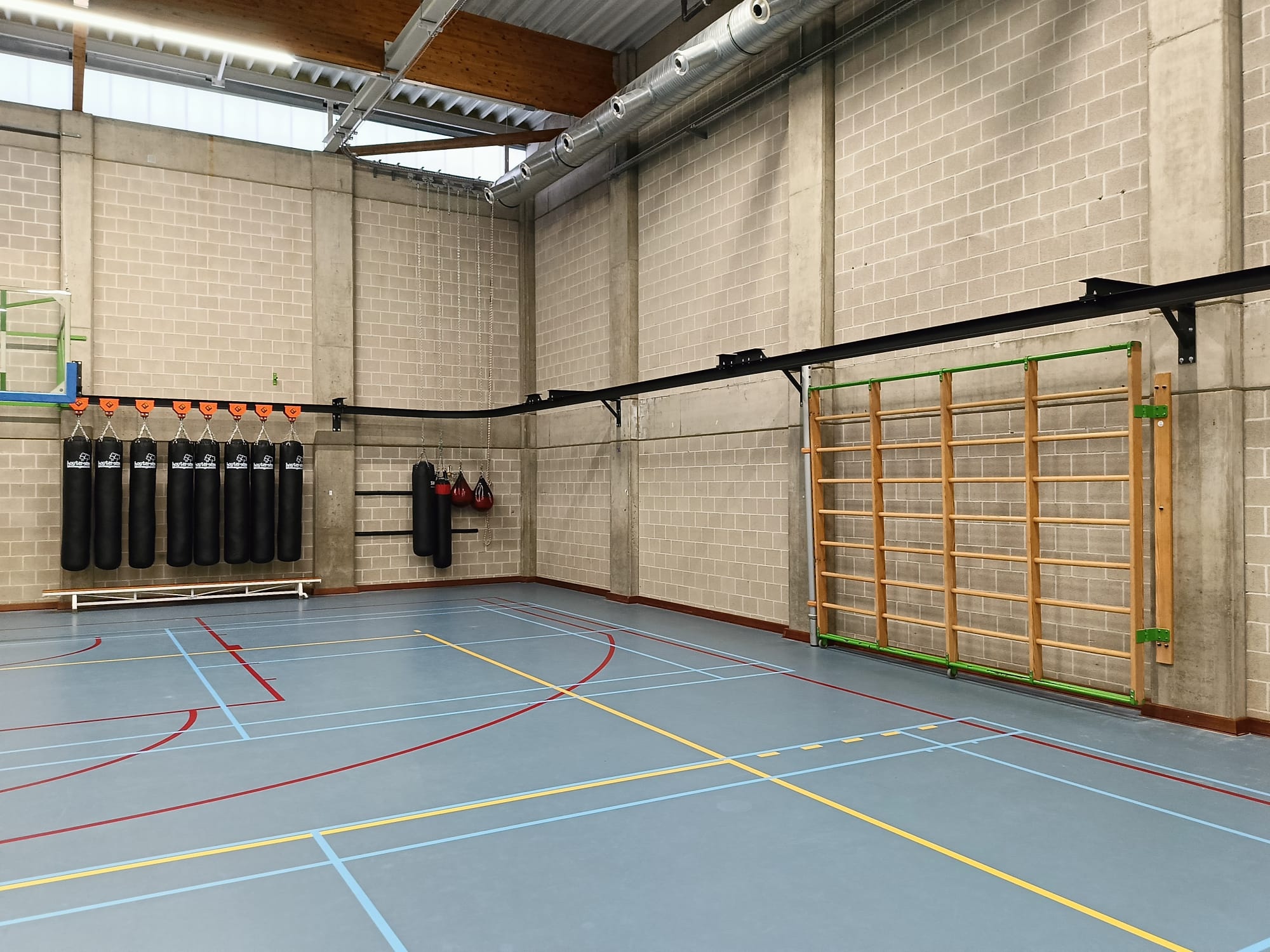 - Flexibiliteit: Ideaal voor multifunctionele ruimtes; het systeem zorgt ervoor dat de ruimte optimaal gebruikt kan worden zonder dat bokszakken in de weg staan.