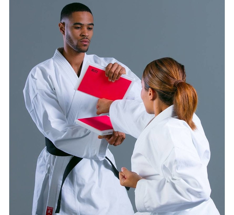 (rood): aanbevolen voor junioren/senioren gevorderden. Alleen gebruikt voor het inspireren van vertrouwen en om een gevoel te krijgen van hoe een massief object aan het raken zou kunnen zijn. Afmetingen: 30,5 cm x 23 cm. 1,2 cm dik.