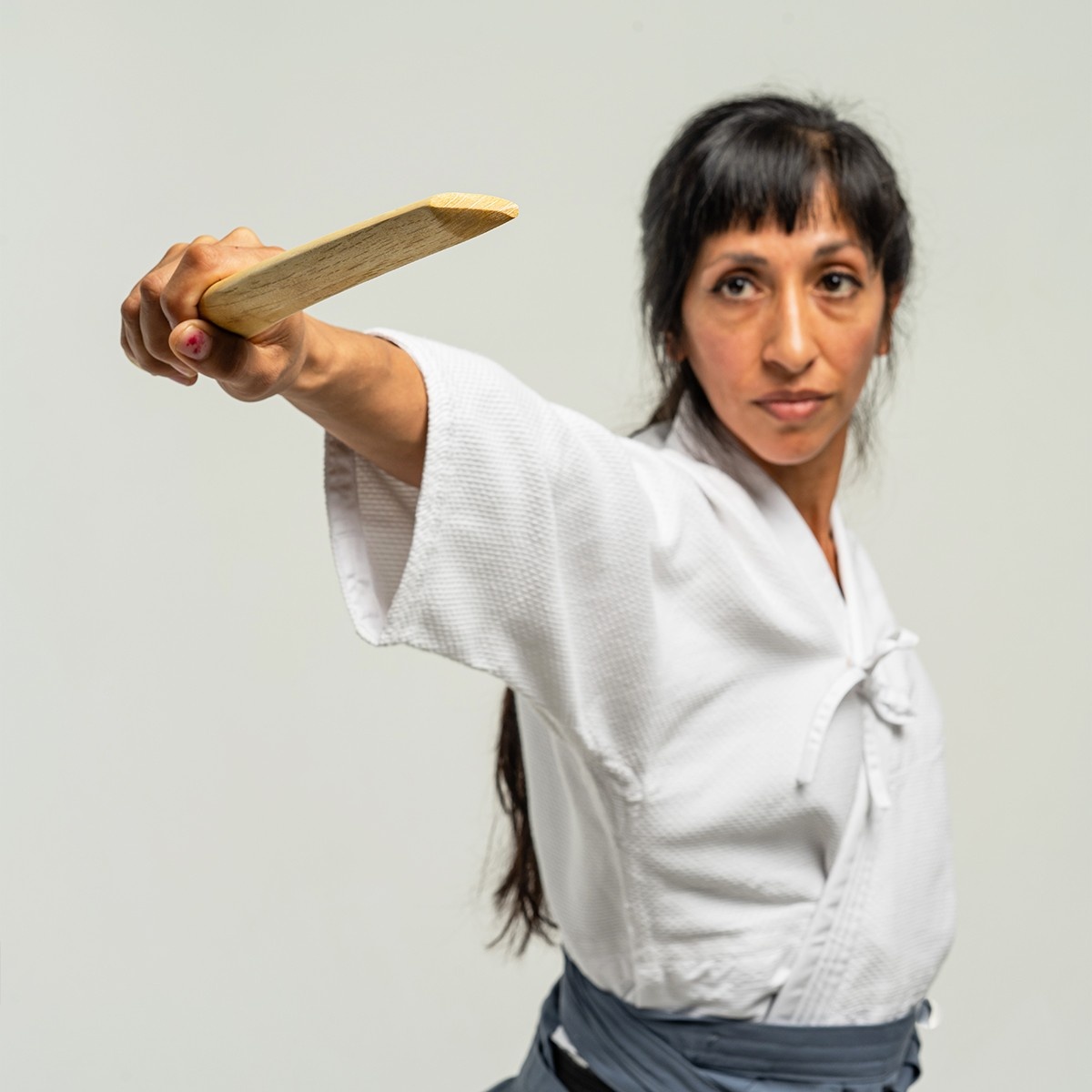 Gebruik de Tanto om verschillende zelfverdedigingstechnieken te oefenen, zoals het afweren van aanvallen en het uitvoeren van gecontroleerde tegenaanvallen. De houten constructie zorgt voor een veilige trainingservaring.