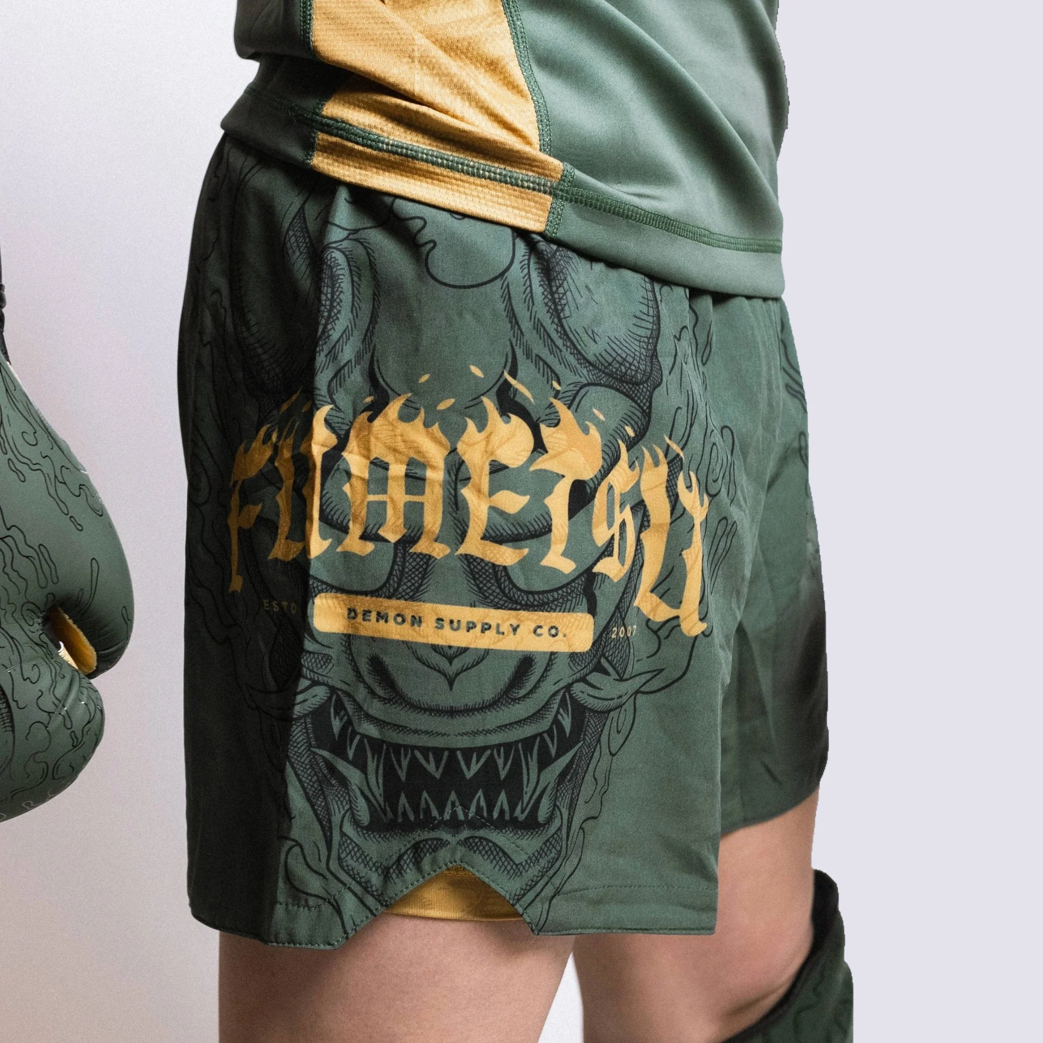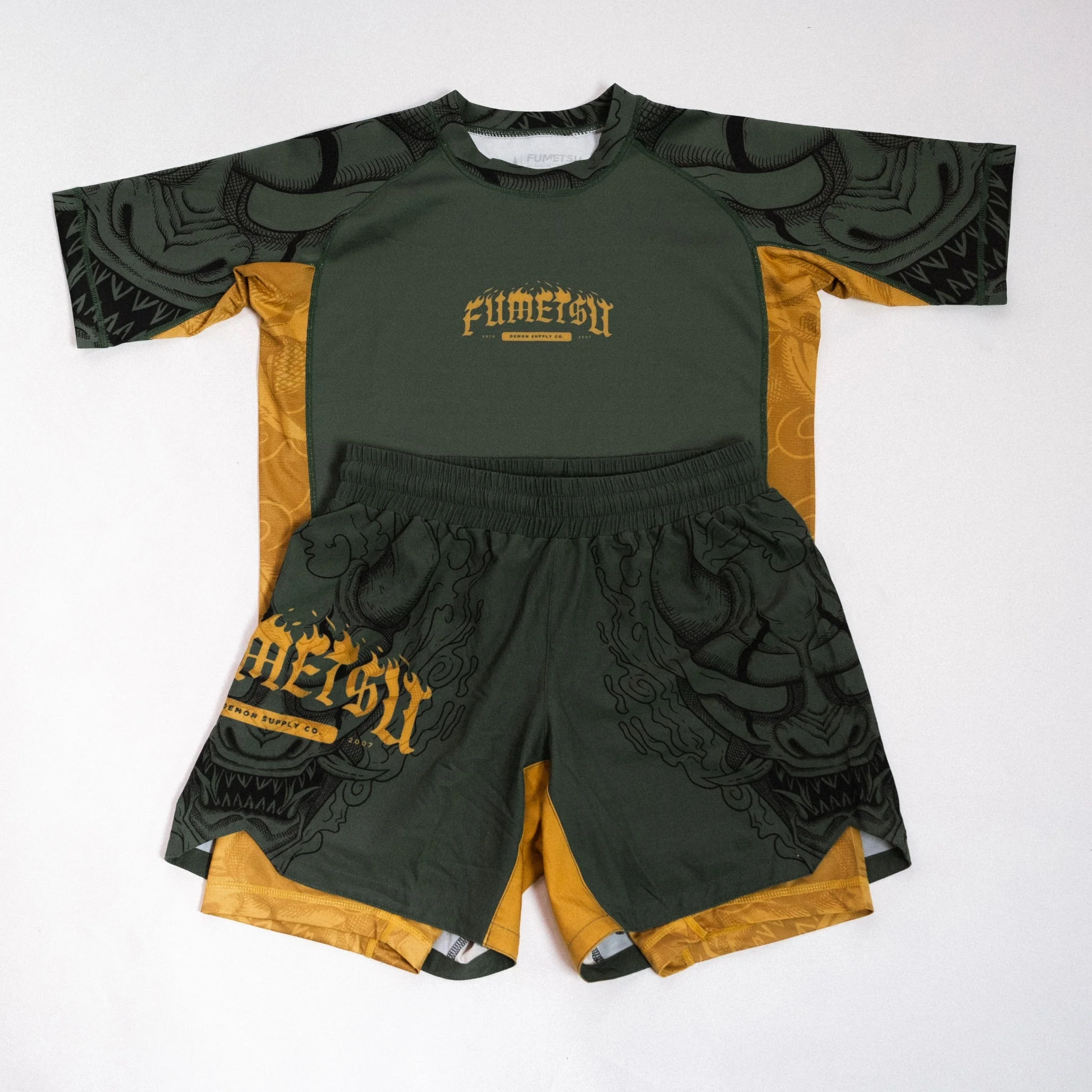 De Fumetsu Oni Dual Layer Shorts in kaki/goud/zwart zijn ontworpen om onder druk te presteren en combineren duurzaamheid met een opvallende stijl. De kaki buitenlaag is voorzien van gouden accenten en gedetailleerde Oni-illustraties, terwijl de compressiebinnenbroek een stevig zittend gevoel biedt. Ideaal voor instructeurs en atleten die zowel functionaliteit als flair van hun uitrusting verlangen. Belangrijkste kenmerken: Dual-layer prestaties met compressiebroek als basis Duurzame 4-way stretchstof Gesublimeerde afbeeldingen met handgetekend Oni-ontwerp Zijsplit voor onbeperkte bewegingsvrijheid Intern trekkoord voor een stevige pasvorm Normale atletische pasvorm Ontwerp gemaakt in het Verenigd Koninkrijk Materiaal: Polyester
