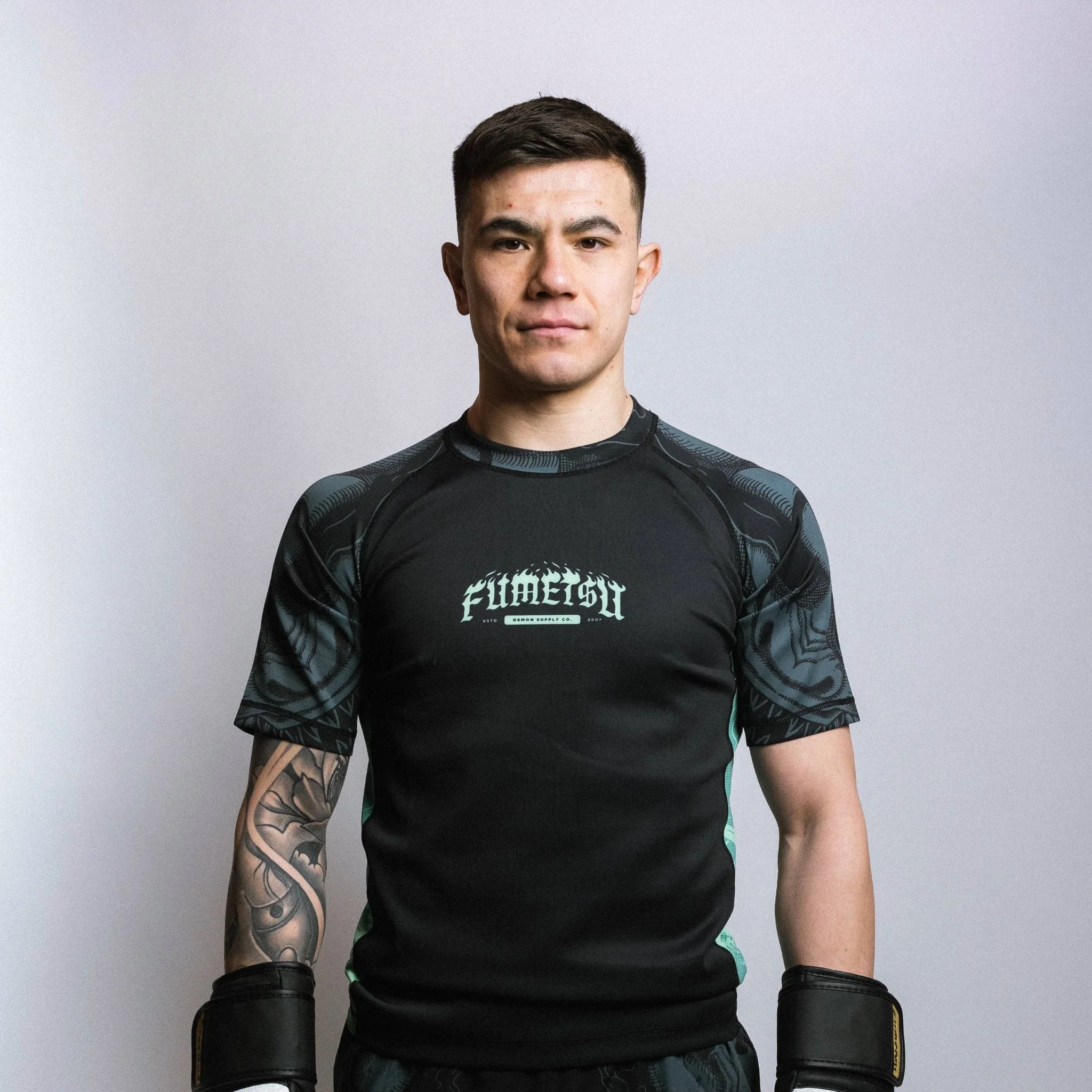 Fumetsu Oni rashguard met korte mouwen, zwart/blauw/mint