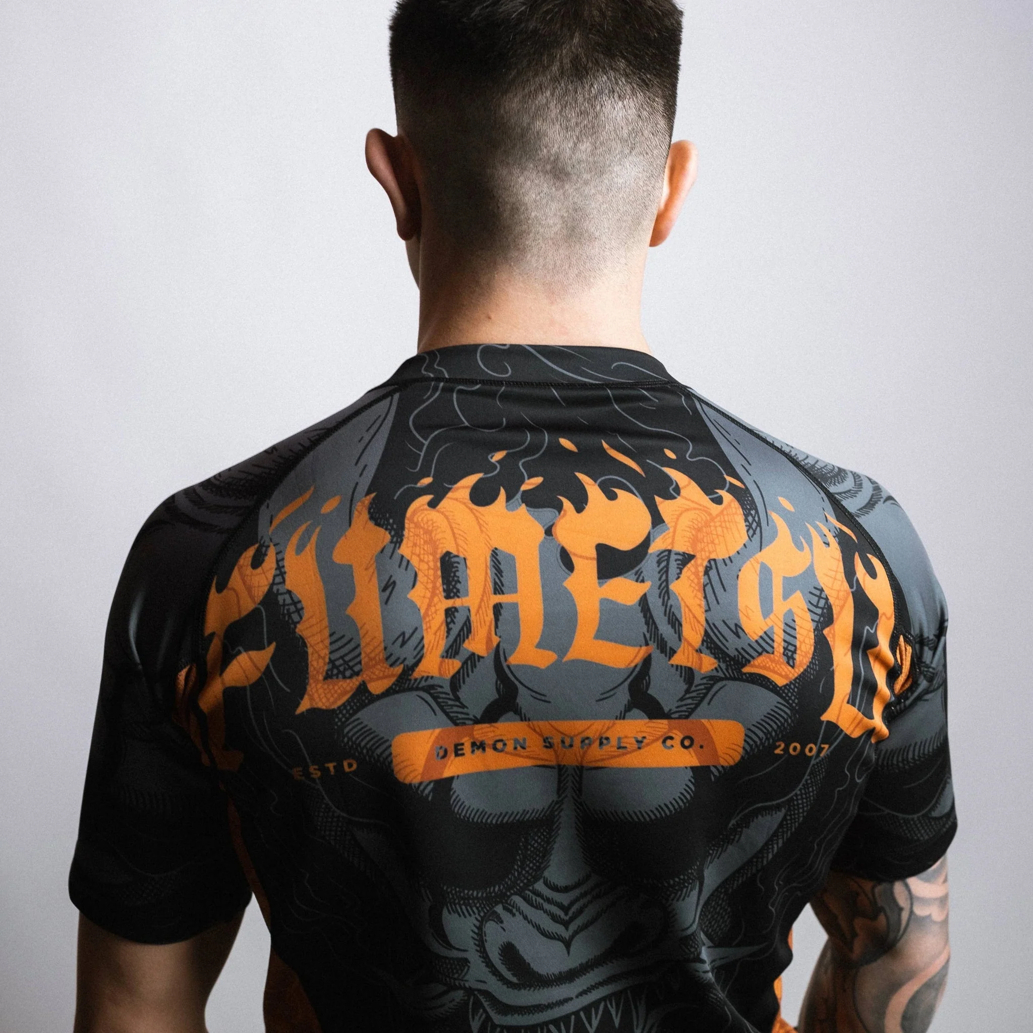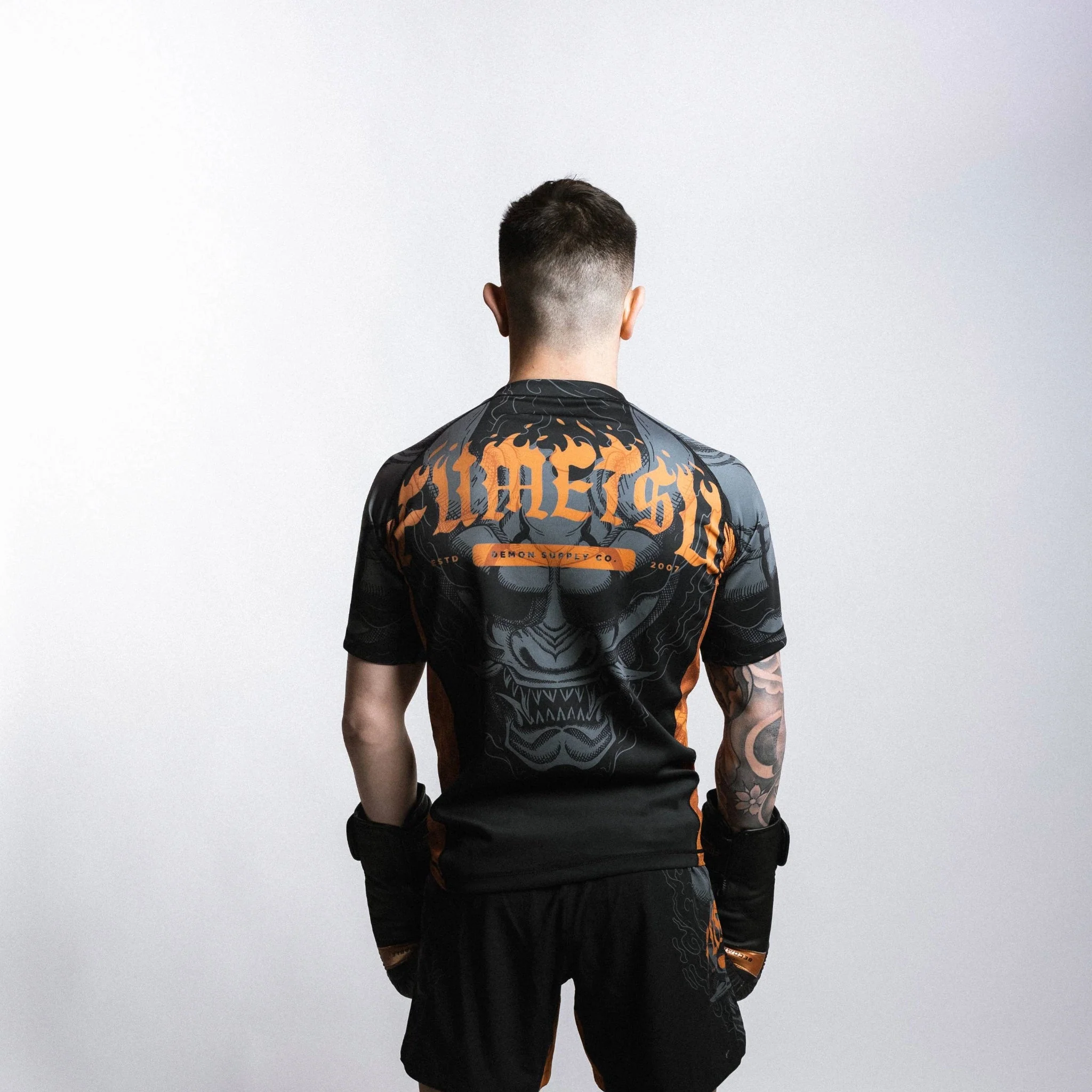 Train vol vertrouwen in de Fumetsu Oni Rash Guard – Zwart/Grijs/Brons. Deze hoogwaardige rash guard is ontworpen voor serieuze grapplers en strikers, met vochtafvoerende stof en een strakke compressiepasvorm. Met zijn bronzen vlamlogo en gedetailleerde demon-illustraties biedt hij een stoere uitstraling zonder in te boeten aan comfort of bewegingsvrijheid. Belangrijkste kenmerken: Compressiepasvorm verbetert prestaties en ondersteuning Gesublimeerde afbeeldingen met gedetailleerd brons- en grijs ontwerp Flatlock-naden om schuren te minimaliseren Flexibel 4-way stretchmateriaal Ideaal voor no-gi, MMA en conditietraining Uniek handgetekend ontwerp van Britse kunstenaars Materiaal: Polyester/elastaan-mix