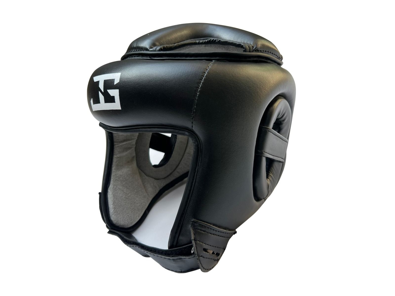 De Joya 'Combat' hoofdbeschermer is bij het gezicht volledig open, gemaakt van PU, verkrijgbaar in verschillende maten.