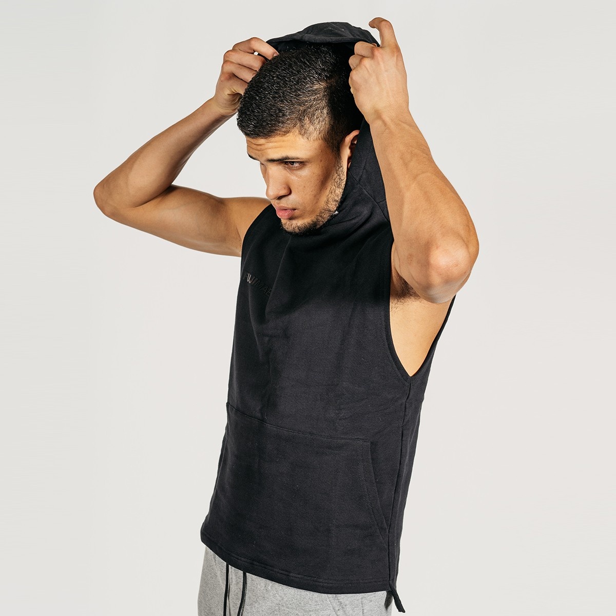 Mouwloze hoodie, geïnspireerd door de urban sports fashion en vervaardigd met fijne materialen voor een premium look.