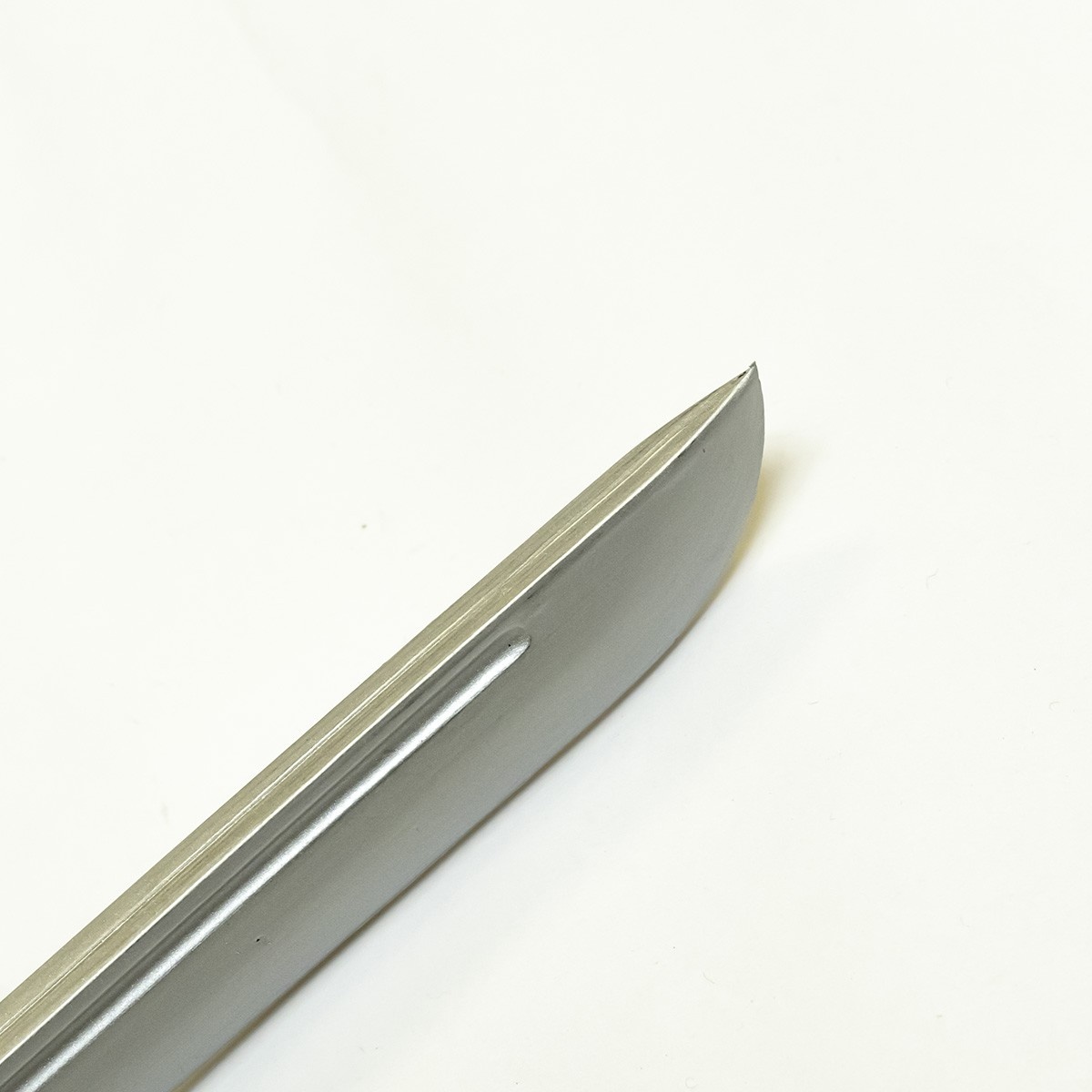 - Lengte van 24 cm: Met een totale lengte van 24 cm, waarvan 10 cm voor het handvat, is het oefenmes goed hanteerbaar voor diverse technieken.