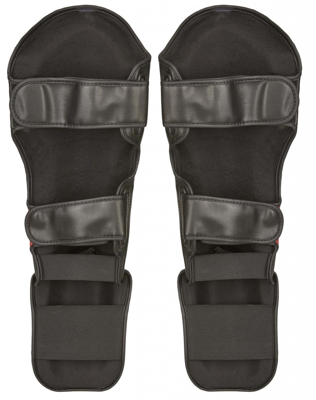 PX Scheen-wreef beschermer FIGHT PRO zwart-rood kunstleder zeer robuust PU Schin-instap beschermer voor gebruik bij Kickboksen, Thaiboksen, K1 etc.