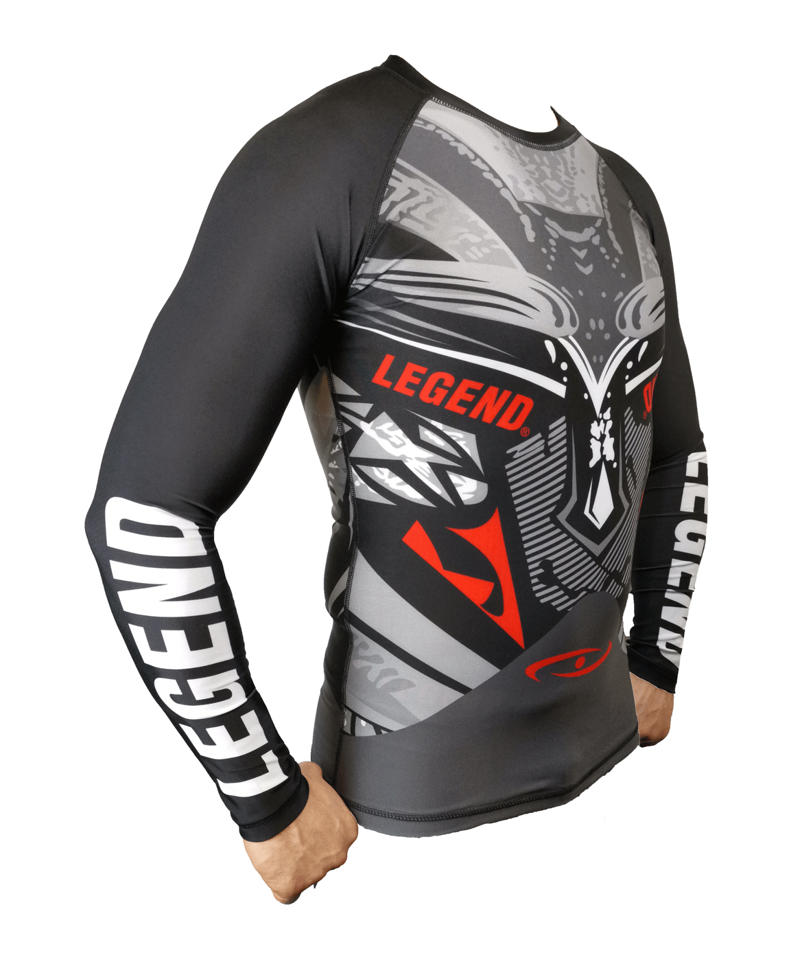 De DryFit Spartan is een topkwaliteit MMA rash guard of Performance shirt gemaakt van super sterk, licht en snel drogend materiaal. Het draagt uiterst comfortabel dankzij de Legend Dry stof van polyester en spandex die zweet afvoert en de spieren warm houdt. Het soepele materiaal behoudt zijn vorm en geeft perfecte bewegingsvrijheid. Dit lange mouwen model is voorzien van een duurzame print en kan ook gebruikt worden voor hardlopen, fietsen, fitness en overige sporten.