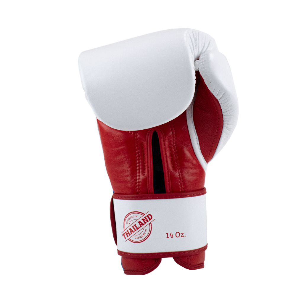 Super Pro Combat Gear Leather Thai Gloves Stripes, Rood,Zwart,Wit