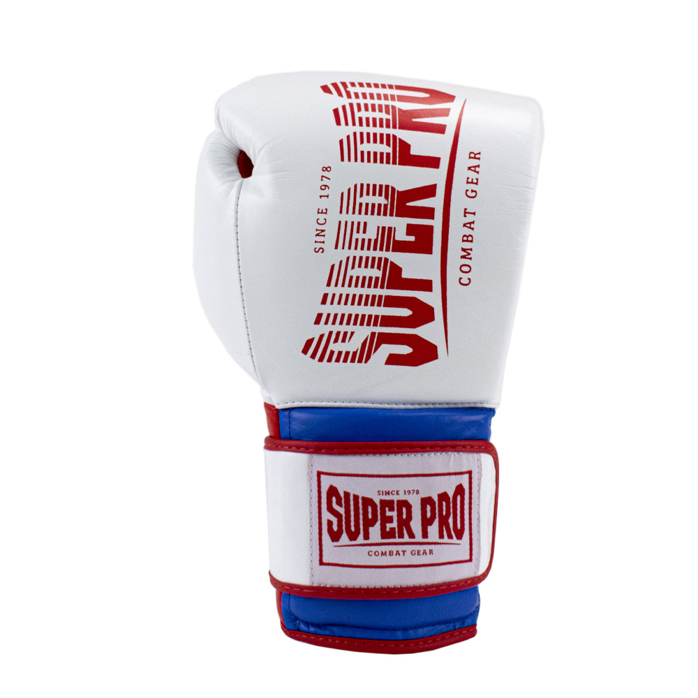 Super Pro Combat Gear Leather Thai Gloves Stripes, Rood,Blauw,Wit