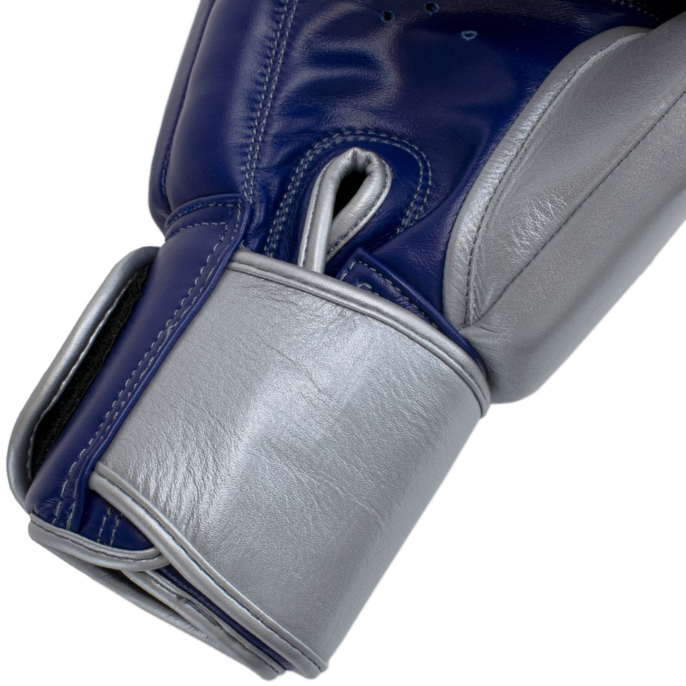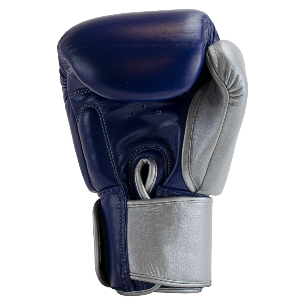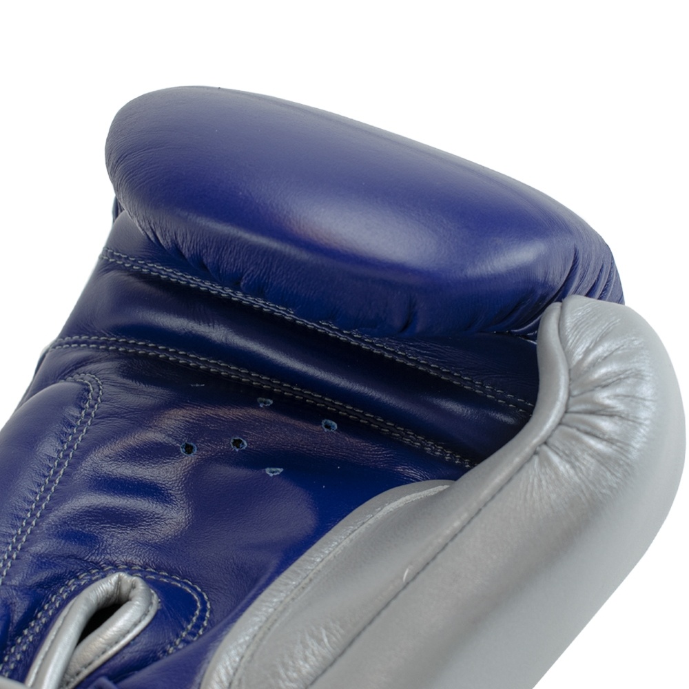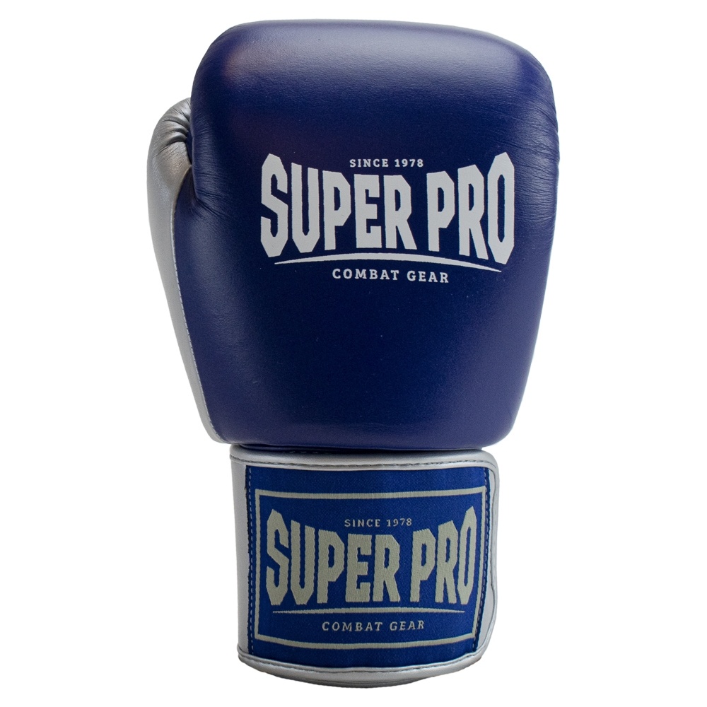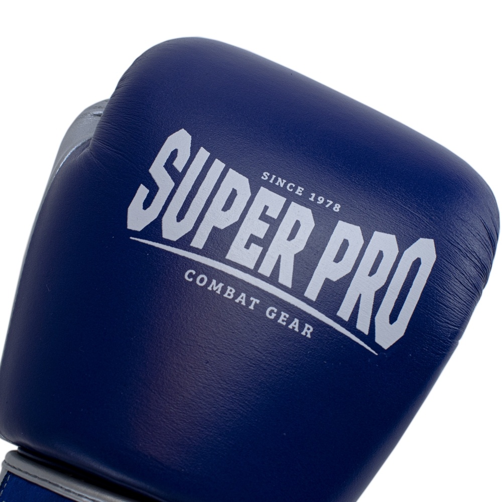 Super Pro Combat Gear Lederen (thai)bokshandschoenen, Blauw,Wit,Zilver