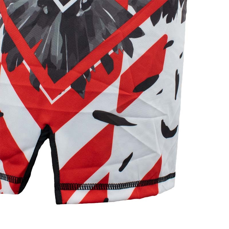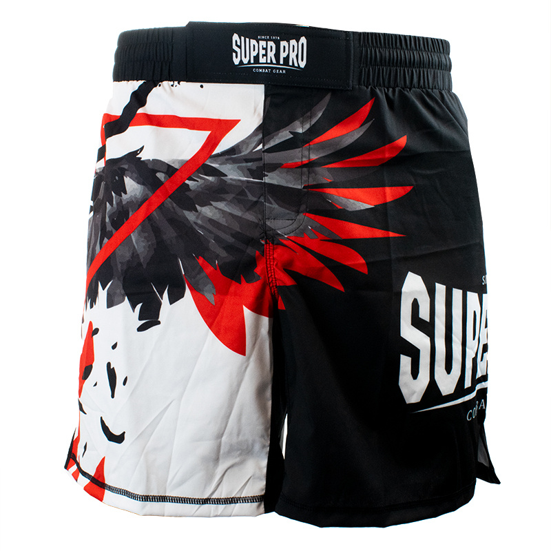 MMA broek van Super Pro, gemaakt van 180 grams, 97% polyester en 3% spandex. De broek is ontzettend licht en voorzien van een kleine split aan de zijkant. De tailleband is voorzien van een dubbele klittenbandsluiting, vetersluiting en is elastisch. De broek is volledig gesublimeerd zodat de opdruk niet vervaagd. Door de combinatie van materiaal, sluiting en pasvorm is dit de perfecte MMA-short.