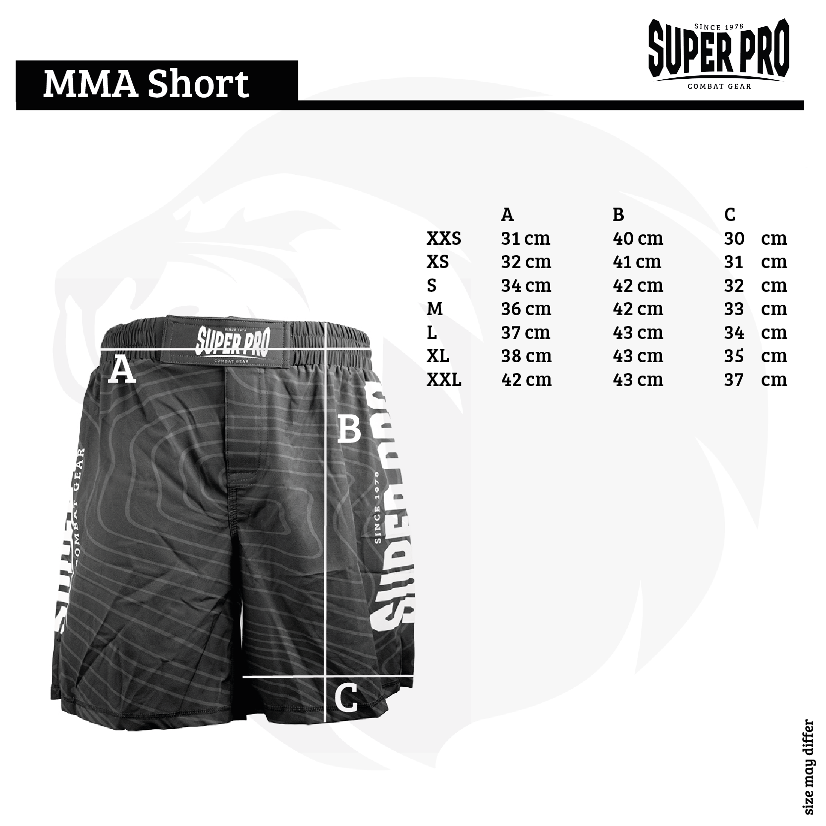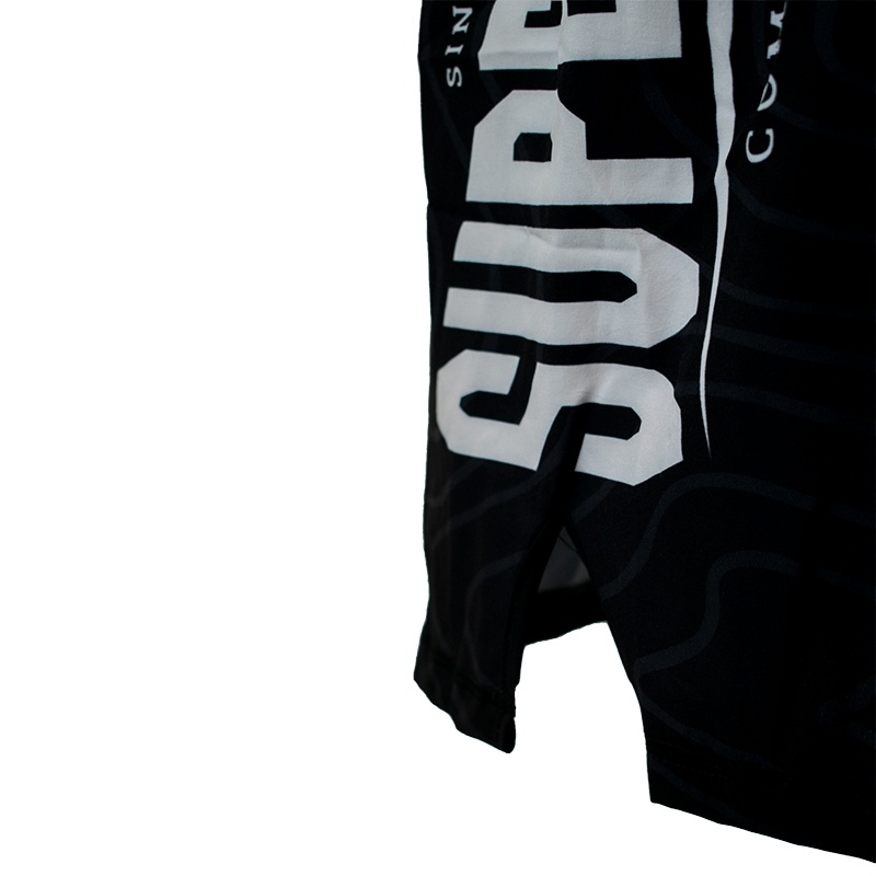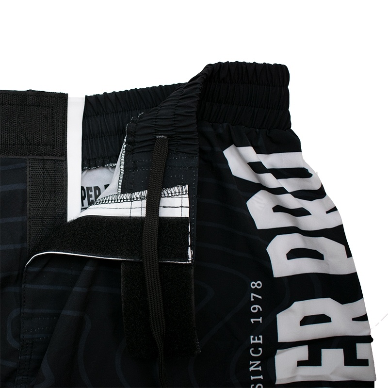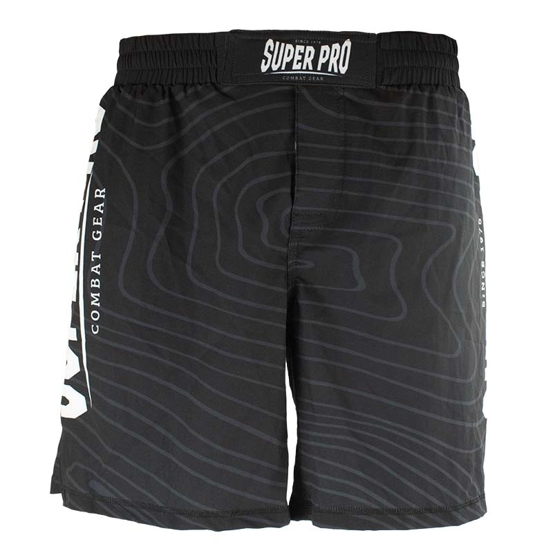 MMA broek van Super Pro, gemaakt van 180 grams, 97% polyester en 3% spandex. De broek is ontzettend licht en voorzien van een kleine split aan de zijkant. De tailleband is voorzien van een dubbele klittenbandsluiting, vetersluiting en is elastisch. De broek is volledig gesublimeerd zodat de opdruk niet vervaagd. Door de combinatie van materiaal, sluiting en pasvorm is dit de perfecte MMA-short.