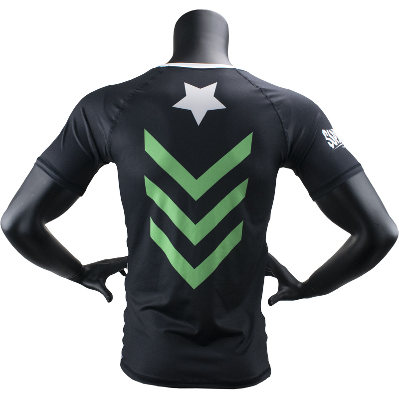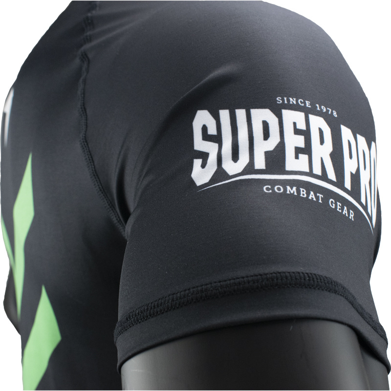 Super Pro Combat Gear Rashguard Shortsleeve No, Zwart,Groen,Zilver