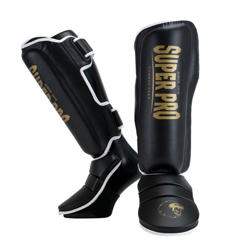 Super Pro Combat Gear Scheenbeschermer Protector, Goud,Zwart,Wit