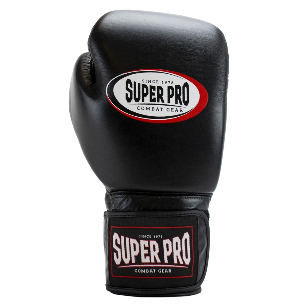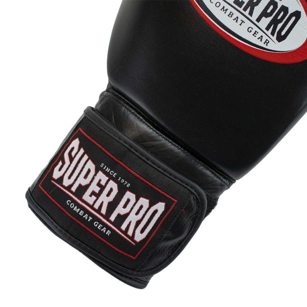 Super Pro Combat Gear Thai-pro Lederen (thai)bokshandschoenen, Zwart