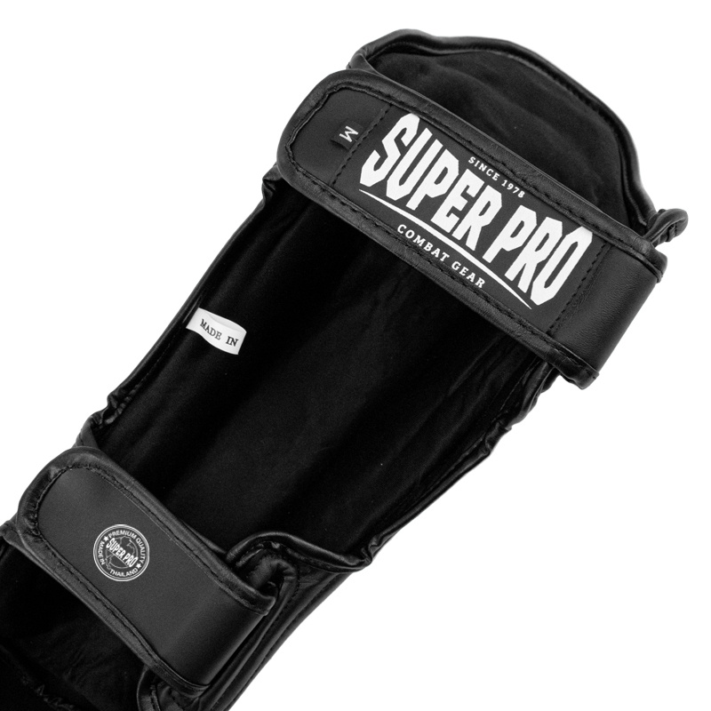 Deze Super Pro Combat Gear scheenbeschermers zijn gemaakt van stevig kunstleder. De padding, welke is opgebouwd uit meerdere lagen, is voorgevormd en biedt de nodige bescherming. Door middel van de 2 klittenbandsluitingen aan de achterzijde en de elastiek aan de onderkant van de voet kun je de scheenbeschermers makkelijk op maat stellen en voelen ze heerlijk aan tijdens de training.