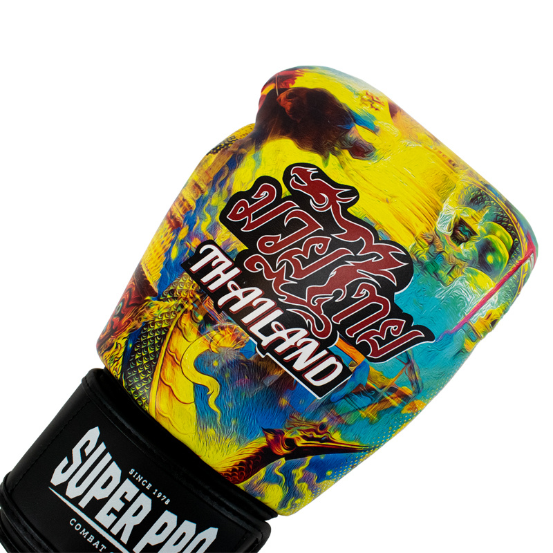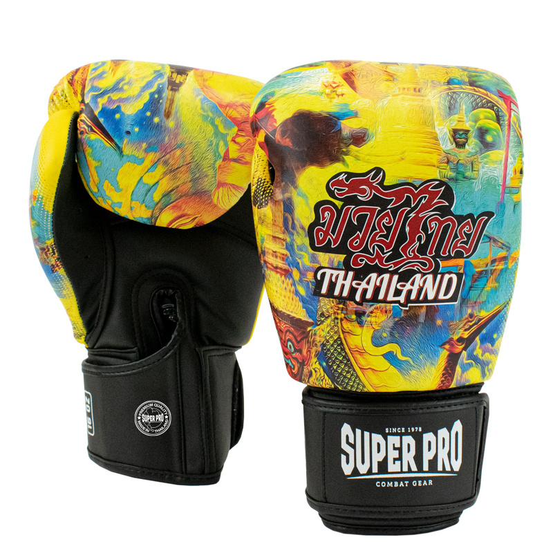 Super Pro Combat Gear Thaibokshandschoenen Leder Pattaya Made In Thailand, Zwart,Geel