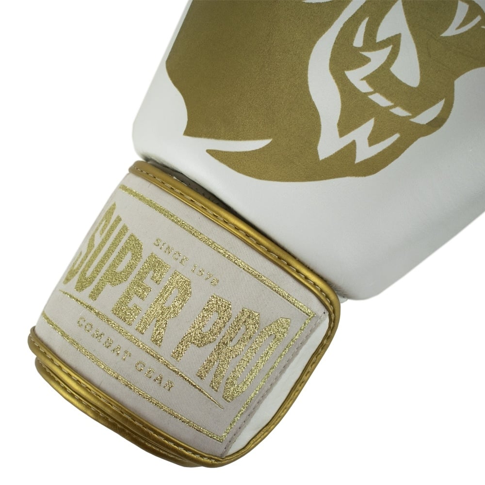 Super Pro Combat Gear Warrior Lederen (kick)bokshandschoenen, Goud,Wit
