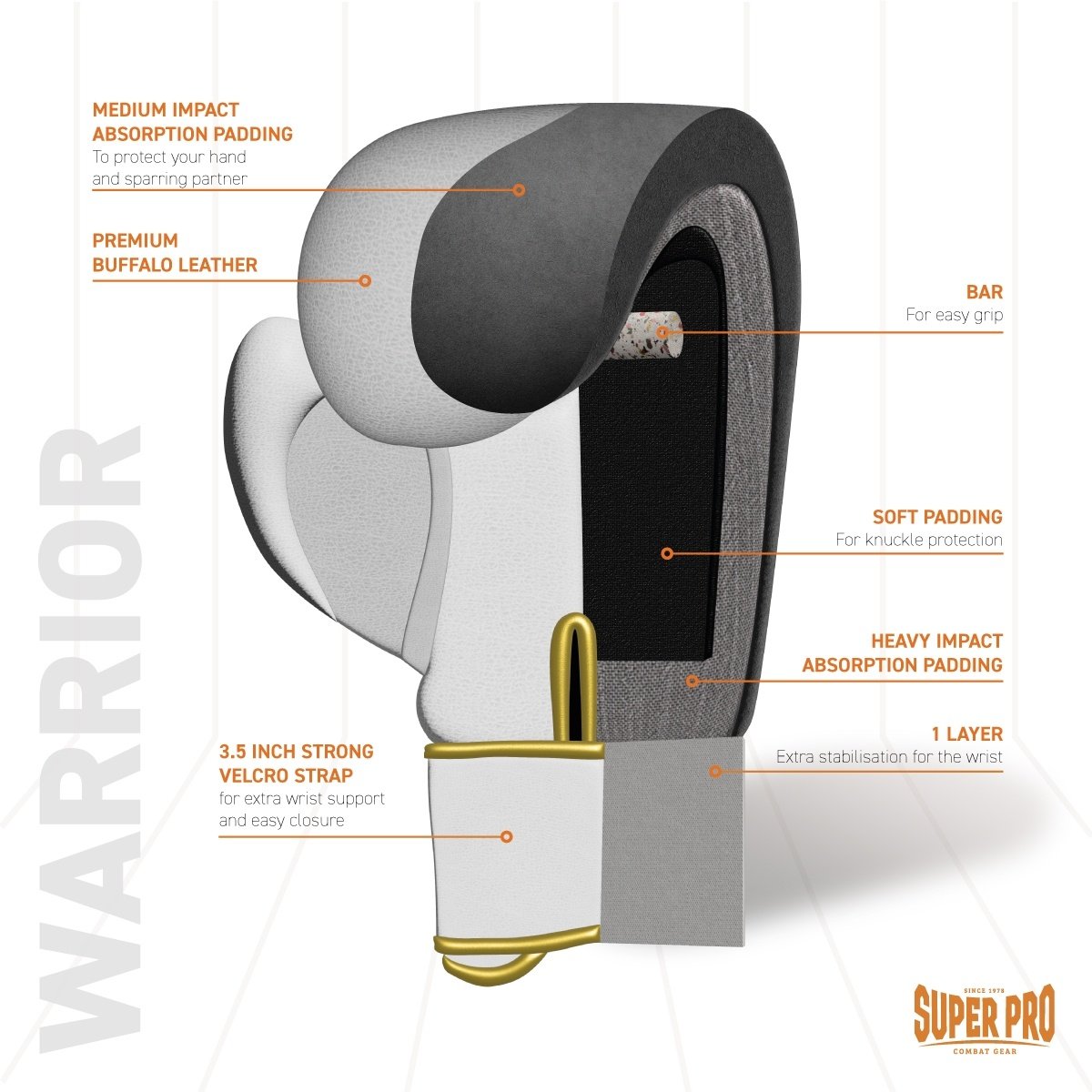 Super Pro Combat Gear staat al sinds 1978 bekend om haar buitengewoon goede kwaliteit. Dit komt doordat er geen concessies in materiaal keuze en comfort gedaan worden. De producten zijn constant doorontwikkeld door toonaangevende trainers en wereldkampioenen. Zij weten als geen ander aan welke eisen de producten moeten voldoen.