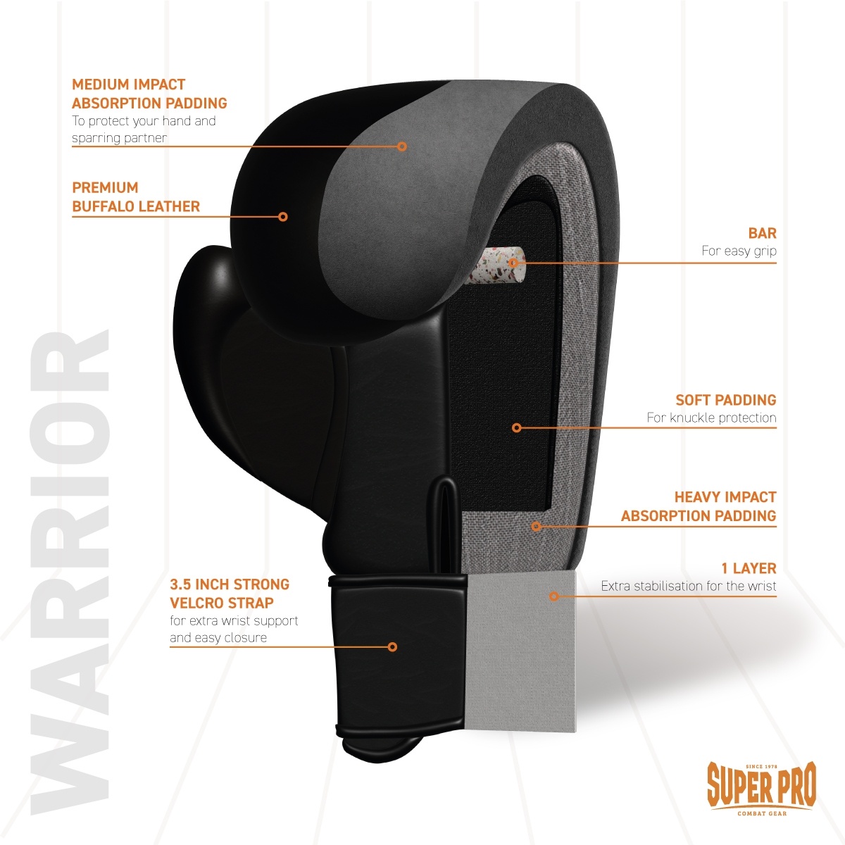 Super Pro Combat Gear staat al sinds 1978 bekend om haar buitengewoon goede kwaliteit. Dit komt doordat er geen concessies in materiaal keuze en comfort gedaan worden. De producten zijn constant doorontwikkeld door toonaangevende trainers en wereldkampioenen. Zij weten als geen ander aan welke eisen de producten moeten voldoen.