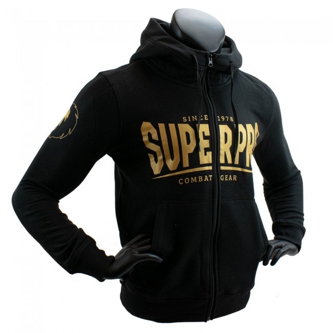 Super Pro Hoodie met Rits S.P. Logo Zwart/Goud