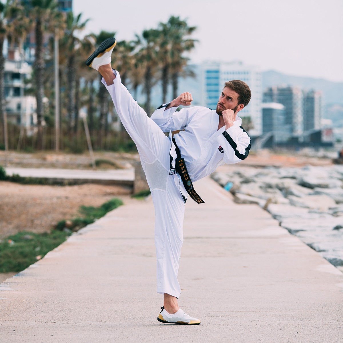 Gebruik de Tae v2-schoenen om scherpe en precieze trappen te oefenen. De flexibele buitenzool en het lichtgewicht ontwerp helpen je om je techniek te verfijnen en je snelheid te verhogen.