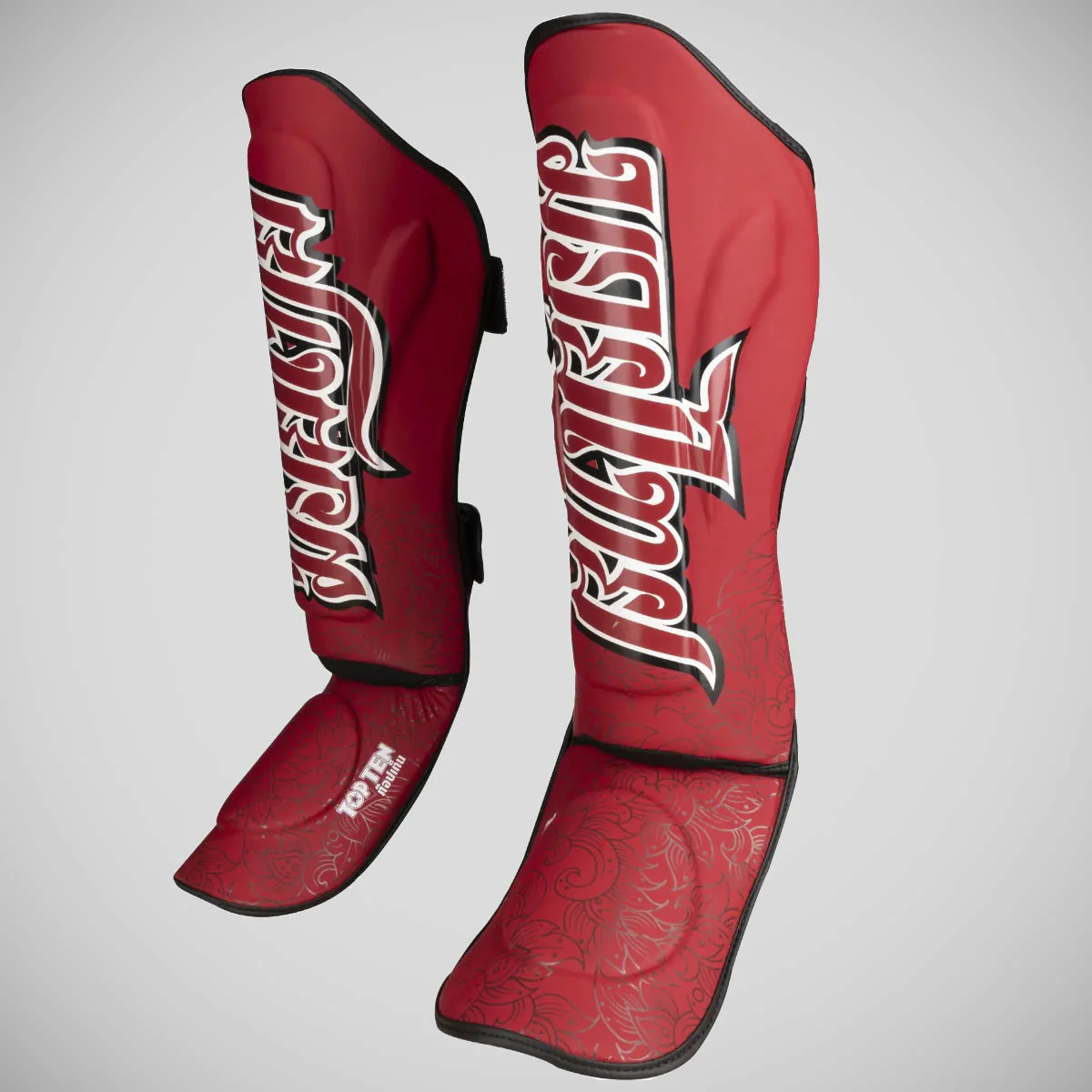 Verrijk je vechtsportuitrusting met de „Nong Han“-scheenbeschermer van Top Ten. Deze beschermer is ontworpen met het oog op duurzaamheid en heeft een stevige bekleding van kunstleer, versierd met een gedetailleerd bloemmotief en opvallende letters, waardoor stijl en prestaties perfect samengaan. Gecombineerde bescherming voor scheenbeen en wreef. Duurzame bekleding van kunstleer. Opvallend ontwerp. MLP-schuimvulling. Geavanceerd bevestigingssysteem.