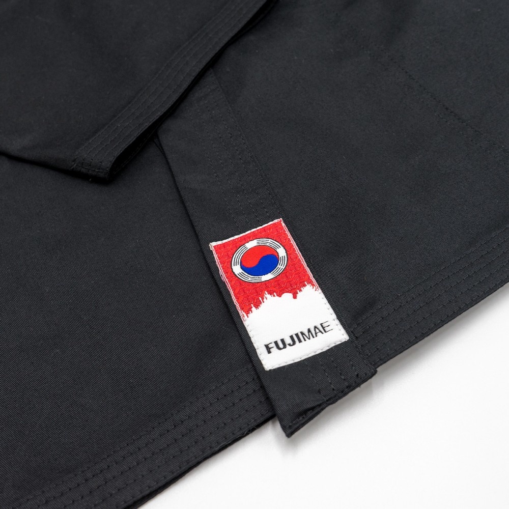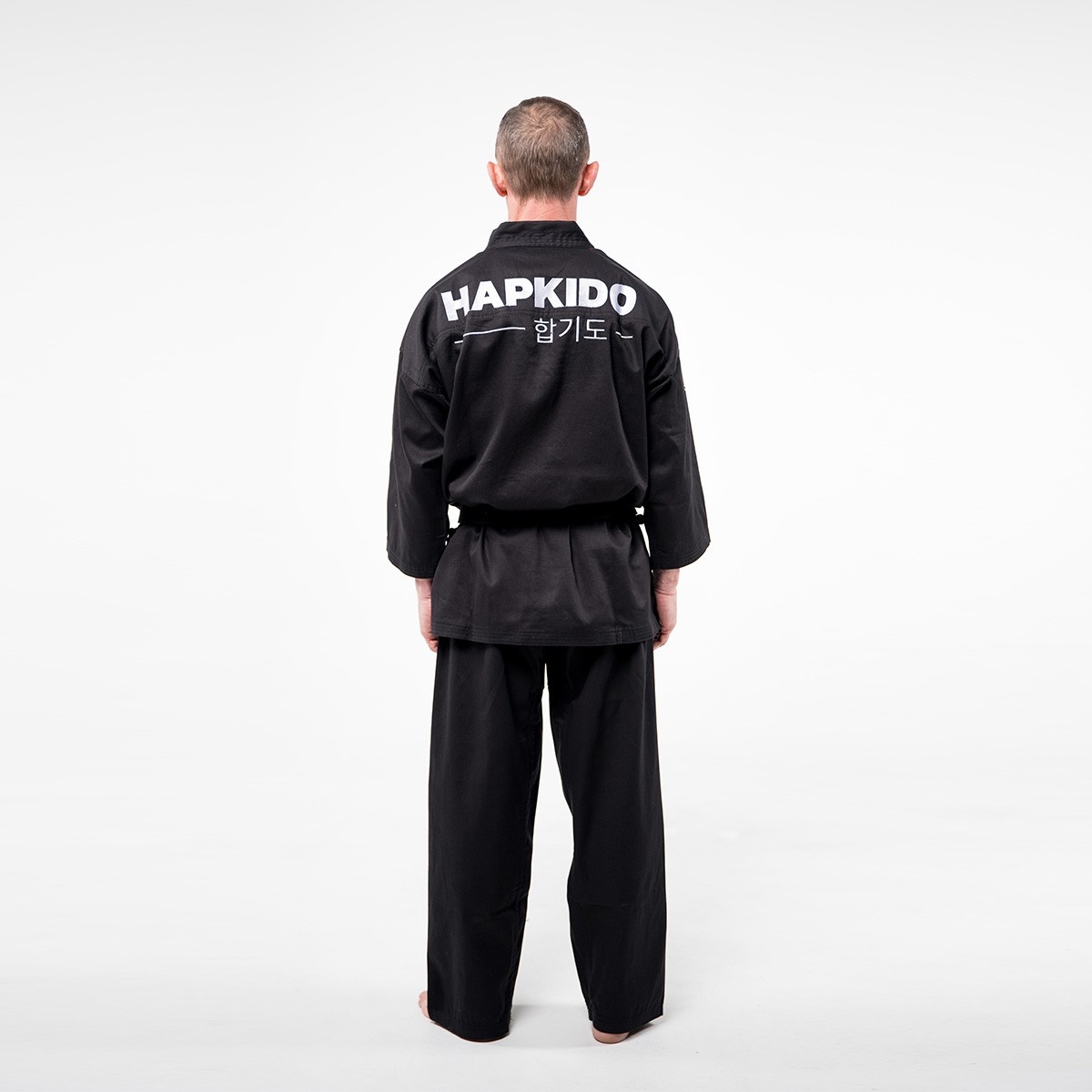 • Hapkido versiering geborduurd op de rug en op de geweven labels, zowel op jas als broek.