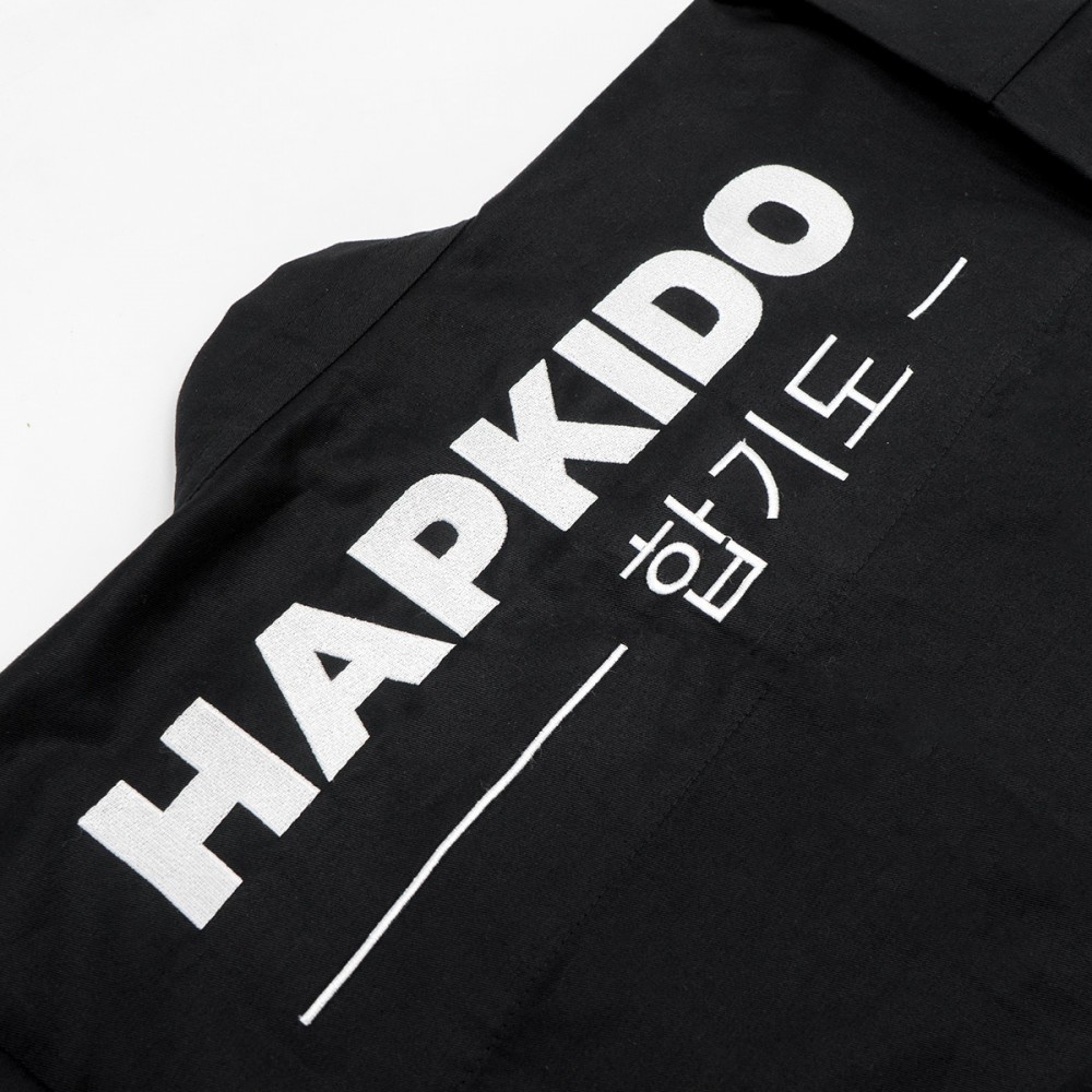 • Hapkido versiering geborduurd op de rug en op de geweven labels, zowel op jas als broek.
