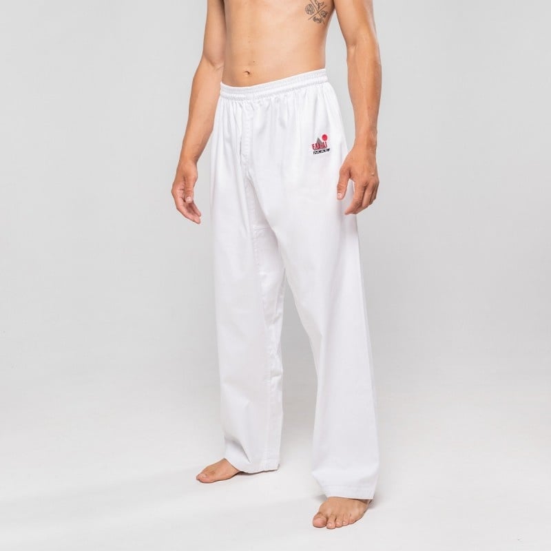 Deze Karate broek wordt apart geleverd om extra combinaties van maat en kleur mogelijk te maken. De Karate broek is ontworpen om zich aan te passen aan het veeleisende tempo van de dagelijkse training; het patroon is verbeterd, het nieuwe ontwerp biedt een perfecte look en de 9oz 100% katoenen stof biedt meer weerstand, comfort en kwaliteit dan elke andere Karate broek sen die op de markt verkrijgbaar zijn. Geschikt voor beginners die op zoek zijn naar kwaliteit, voor een prima prijs, maar ook voor de meer ervaren Karateka.