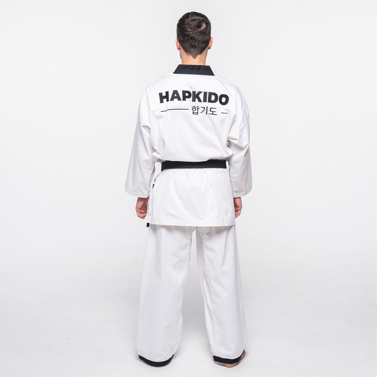 - Stijlvolle uitstraling: De geborduurde Hapkido-identificatie en de hoogwaardige afwerking geven de dobok een professionele en stijlvolle uitstraling.