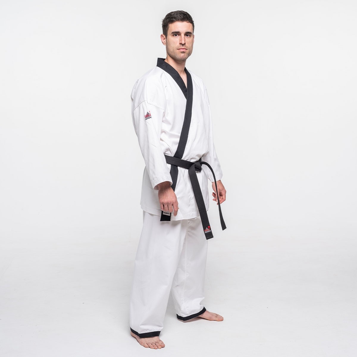 - Bewegingsvrijheid: De traditionele snit biedt onbeperkte bewegingsvrijheid, essentieel voor het uitvoeren van diverse Hapkido-technieken.