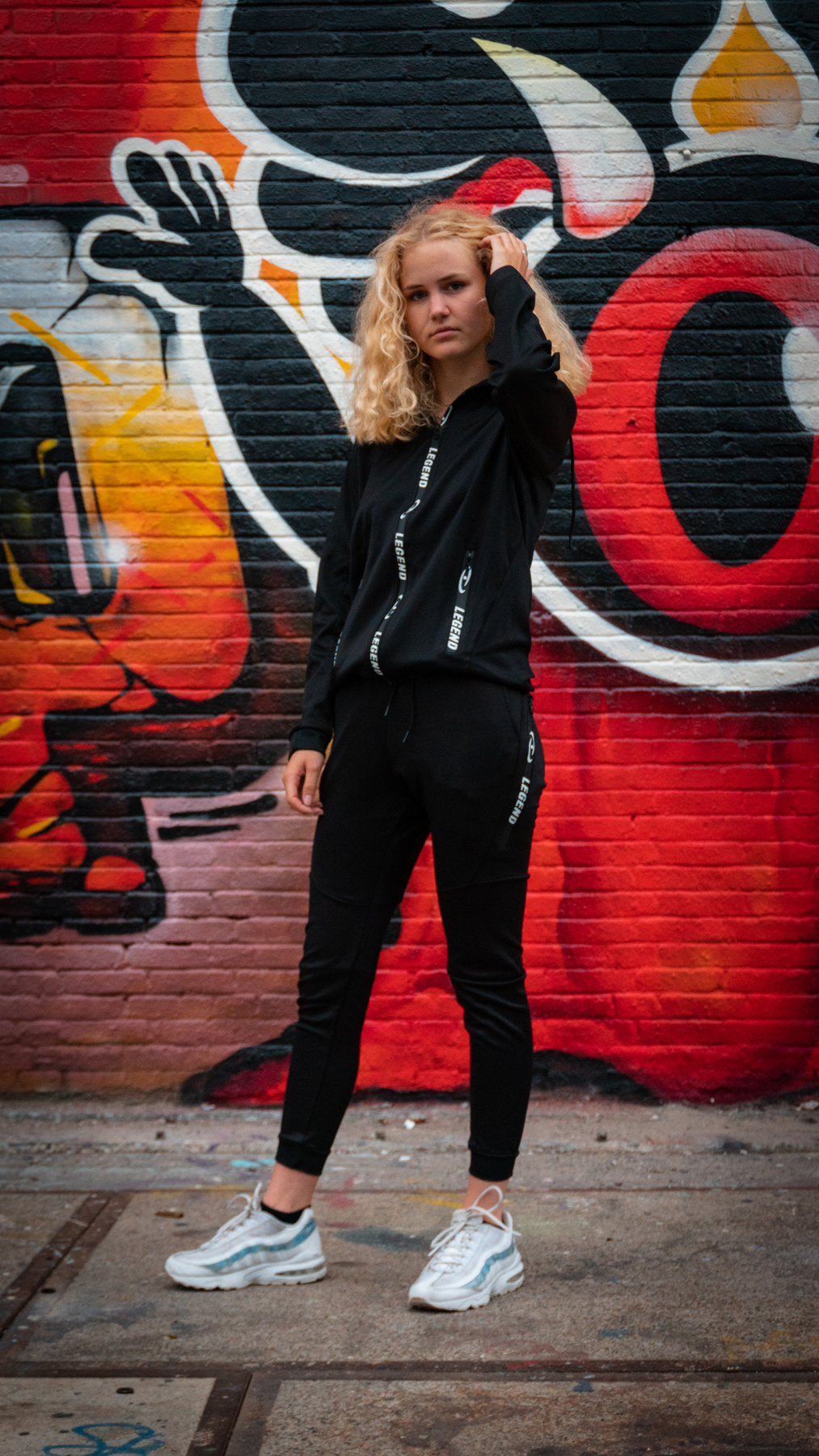 De lichte stof van deze trainingspakken zorgt voor een uiterst comfortabele pasvorm. De stof is ademend en heeft een prettige structuur dankzij de geïntegreerde luchtcompartimenten. Het pak is gemaakt van hoogwaardig polyester en heeft een perfecte pasvorm. De stof rekt in vier richtingen, waardoor je meer bewegingsvrijheid hebt in elke richting. De open steekzakken in zowel de broek als het jack zijn voorzien van een afsluitbare rits, zodat je nooit meer iets kwijtraakt. Het unieke logo van Legend is te vinden op alle ritsen van het pak.
