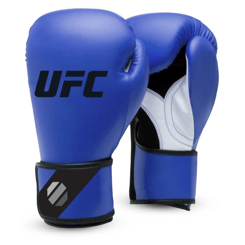 De kunstlederen (kick)bokshandschoenen van het merk UFC zijn voorzien van een lange klittenbandsluiting.