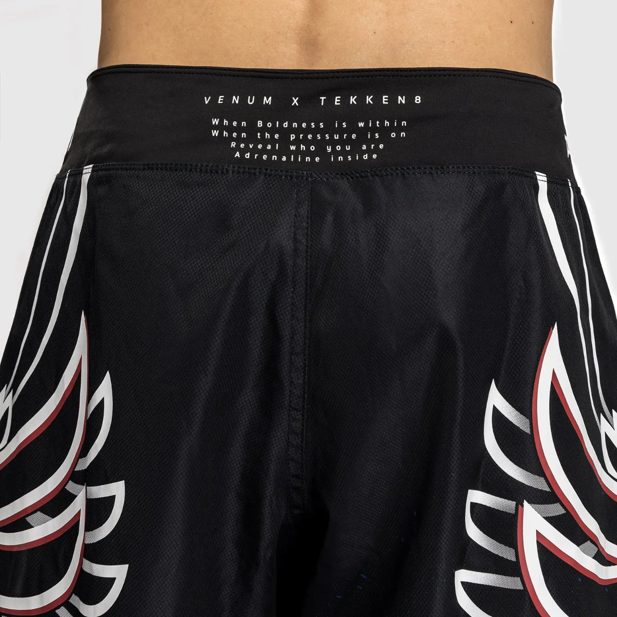 De Venum x Tekken 8 Jin Kazama Fight Shorts zijn een eerbetoon aan de eervolle karatestrijder Jin Kazama. Deze lichtgewicht en soepele short is ontworpen voor maximale prestaties en is voorzien van Jins iconische engelenvleugels op de achterkant van de pijpen, dynamische afbeeldingen en opvallende Venum- en Tekken-logo’s. De tekst op de tailleband voegt een motiverend tintje toe: "When boldness is within / When the pressure is on / Reveal who you are / Adrenaline Inside." Deze vechtshort is ideaal voor MMA, Jiu-Jitsu en andere vechtsporten en past perfect bij de bijpassende rashguard uit dezelfde collectie. Lichte en flexibele prestatiestof Lange pasvorm Zijsplitten voor bewegingsvrijheid Klittenbandsluiting voor een stevige pasvorm Uitstekende weerstand tegen wrijving Gezeefdrukt logo Gesublimeerde patronen Wassen op 30 °C Wassen met soortgelijke kleuren Niet in de droger Niet bleken Voorzichtig strijken