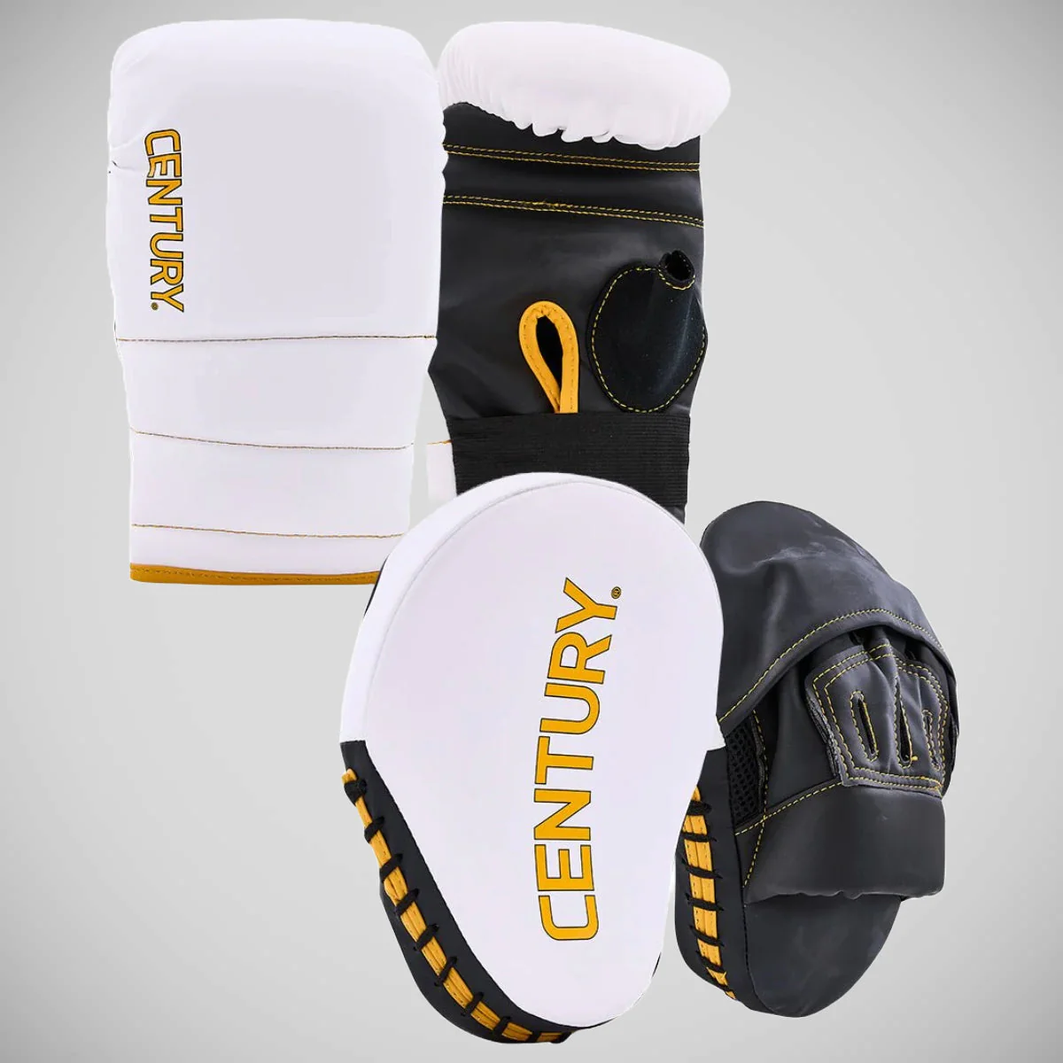 White/ Gold Century Partner Training Gloves and Mitts Combo
