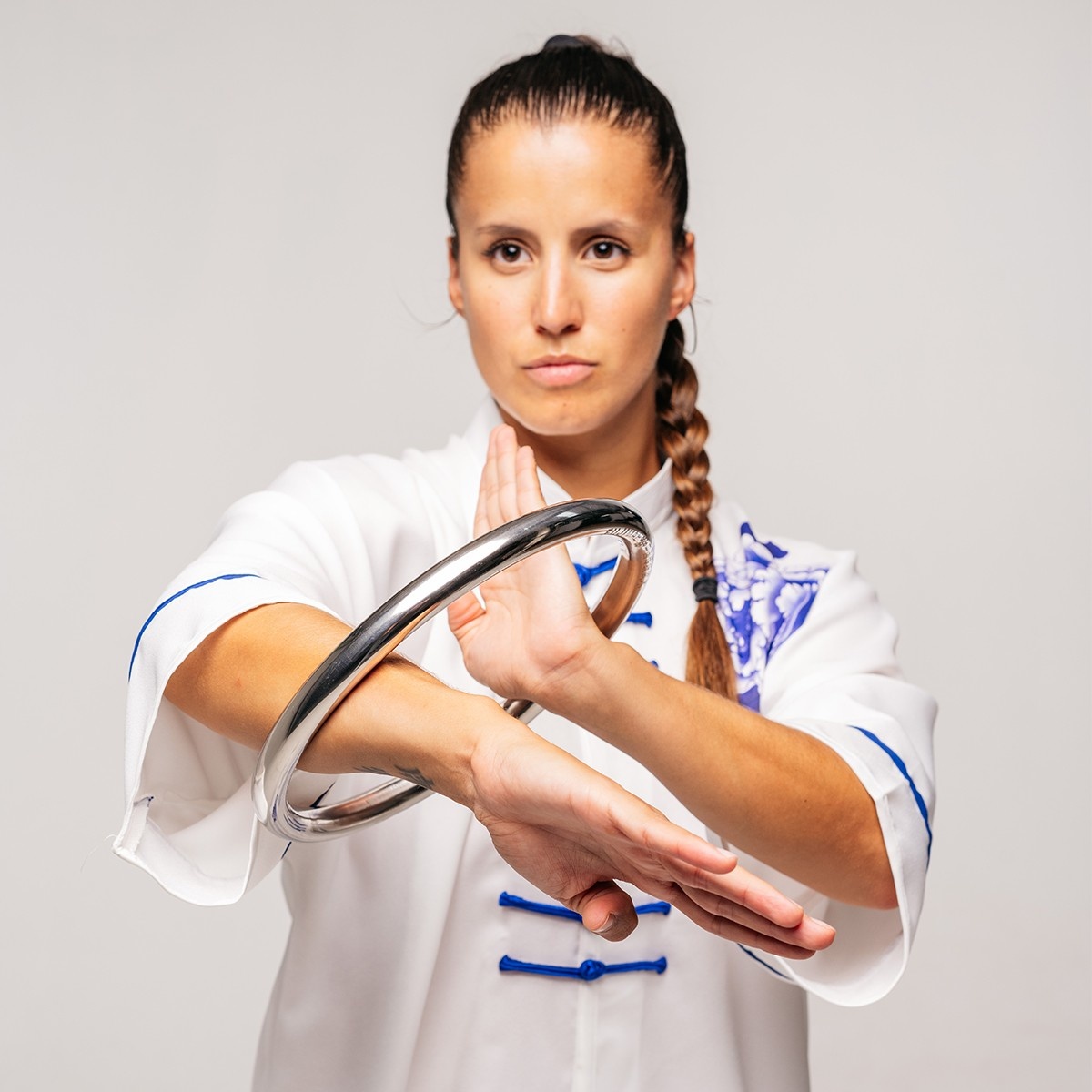 Wing Tsun ring gemaakt van roestvrij staal om de positie, flexibiliteit en kracht van polsen en schouders te oefenen.